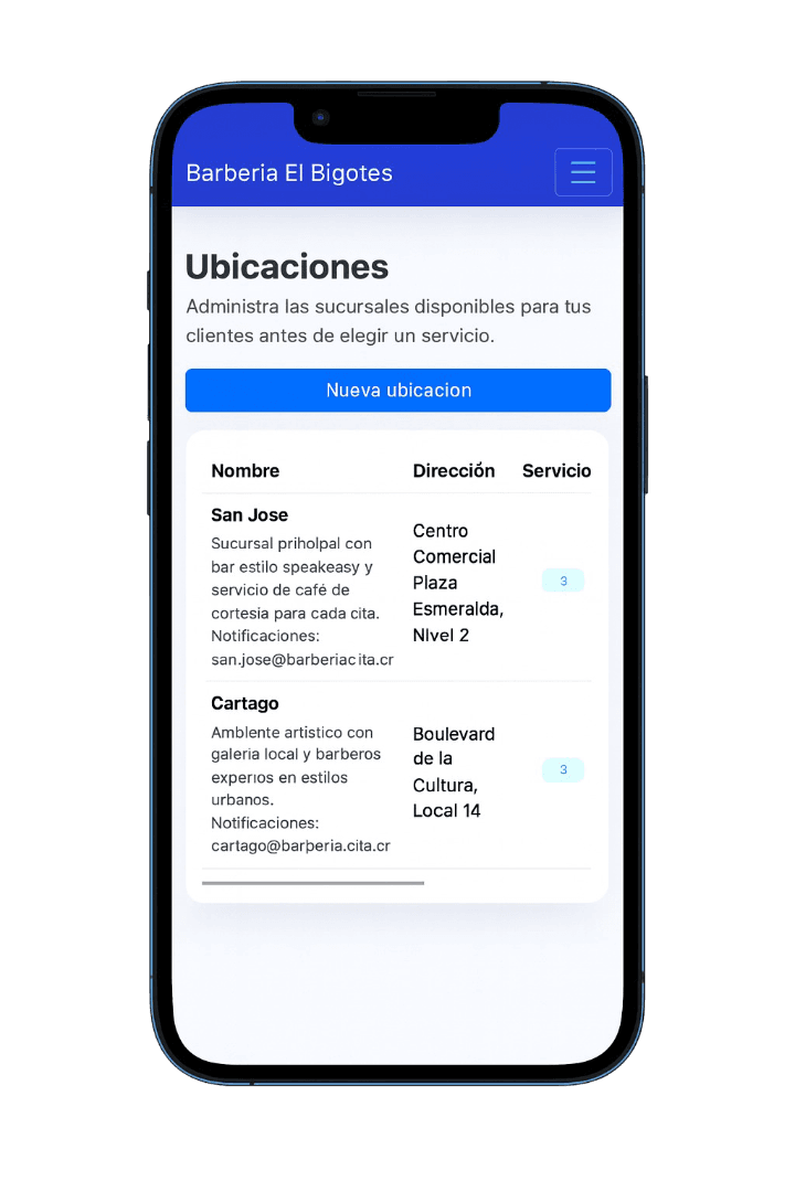 Nuestro sistema permite ofrecer a sus clientes en cual sucursal se ofrece el servicio, de esta manera no importa si su empresa tiene varias sucursales, el cliente podra elegir facilmente la que necesite.